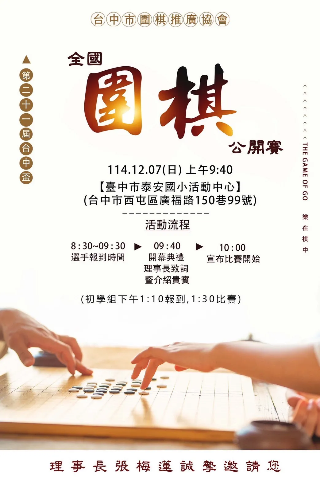 114年12月08日|第21屆台中盃全國圍棋公開賽